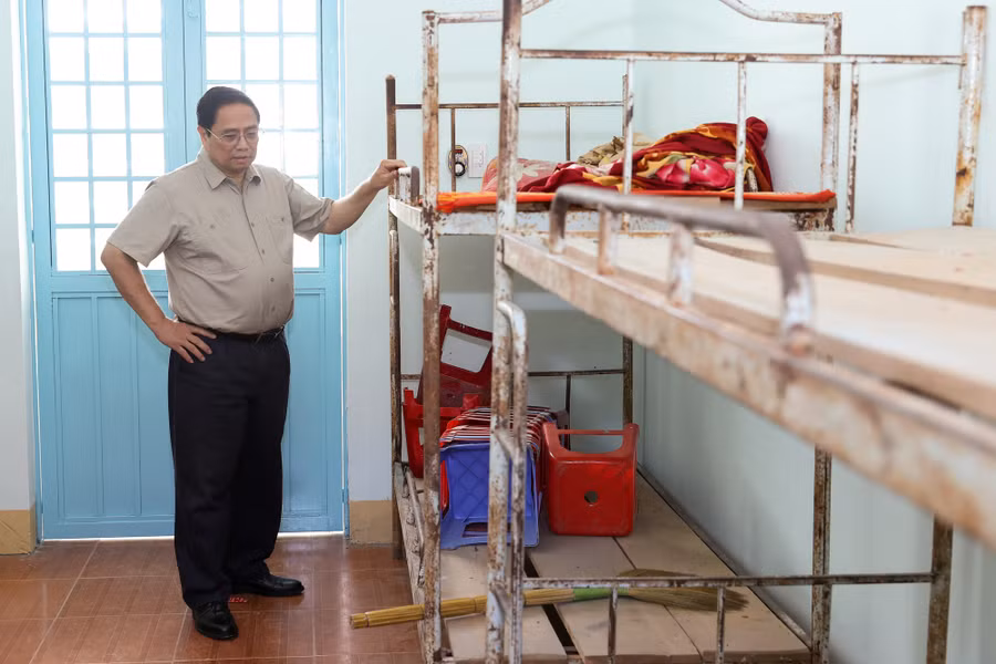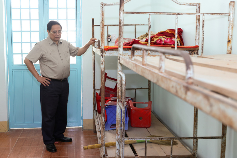 | Thủ tướng khảo sát cơ sở vật chất Trường Phổ thông Dân tộc nội trú huyện Tu Mơ Rông - Ảnh: VGP/Nhật Bắc |
