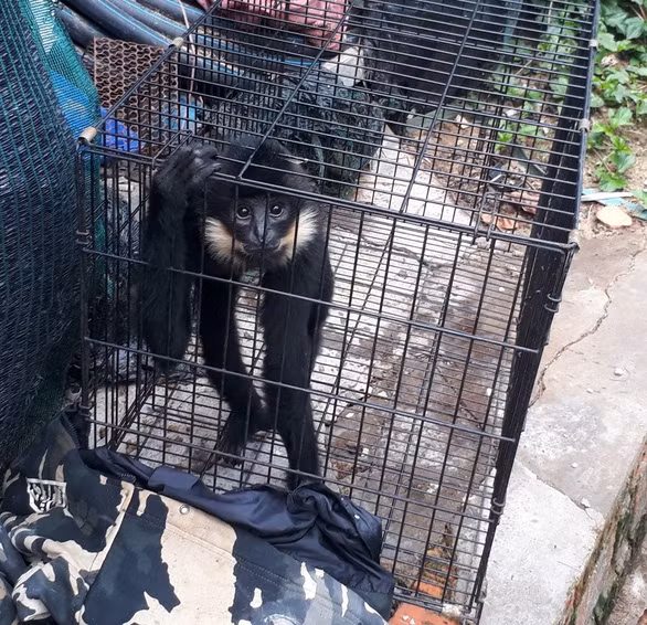 Một ảnh khác được đăng tải với chú thích: Con khỉ được nuôi trong lồng có diện tích chỉ khoảng 0,5m2 - Ảnh: V.V.M.