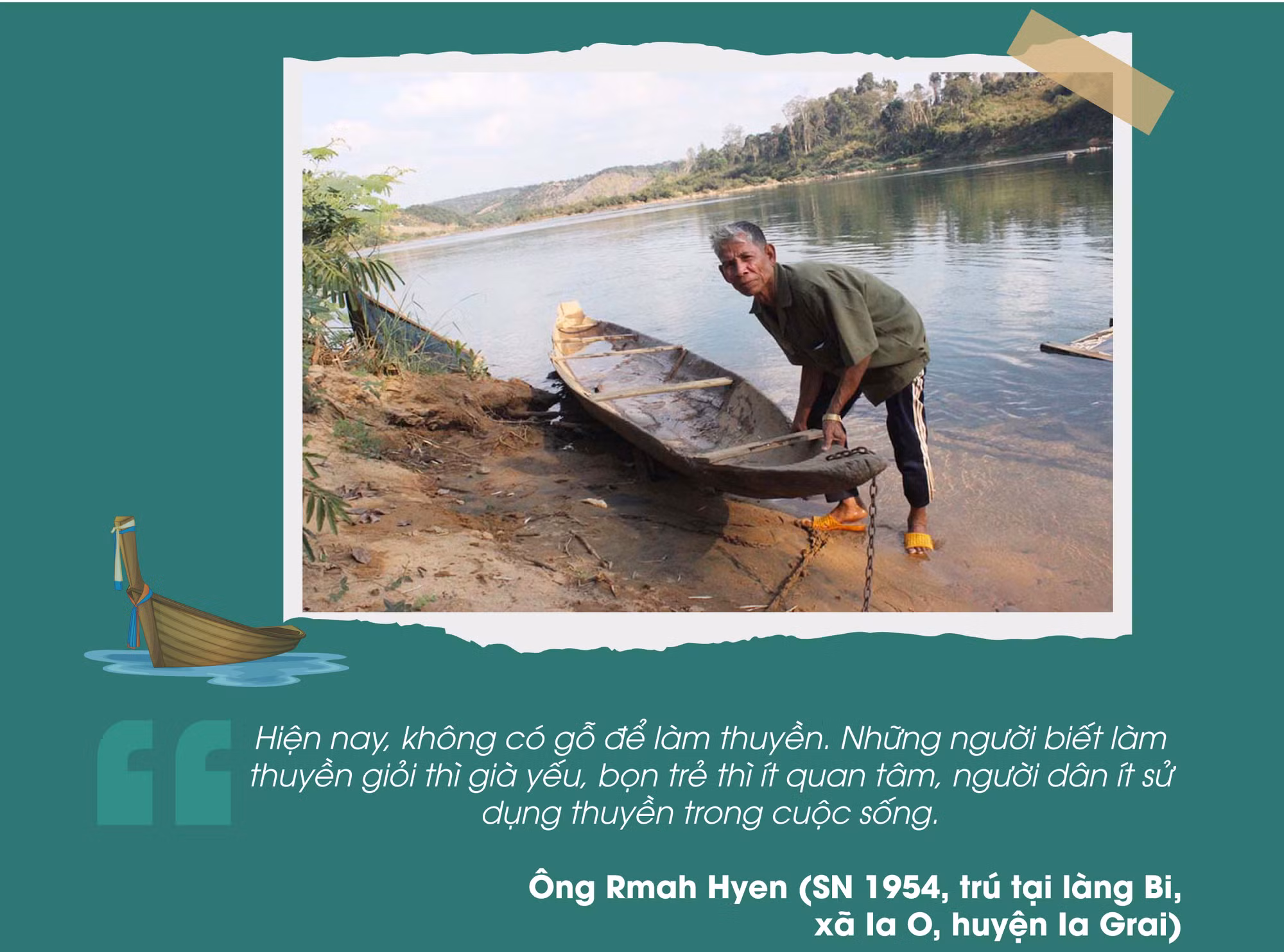 Còn ông Rơ Lan Pêng (SN 1937, trú tại làng Nú, xã Ia Khai) thì cho hay: Ông đã làm được khoảng 60 chiếc thuyền, chiếc làm gần đây nhất là năm 2012. “Ngày nay, việc chọn cây rất khó, một phần tuổi cao sức yếu nên mình ít làm thuyền độc mộc. Những lúc nhớ nghề thì mình chọn những khúc gỗ nhỏ làm thuyền độc mộc dạng mô hình trang trí”-ông Pêng tâm sự.