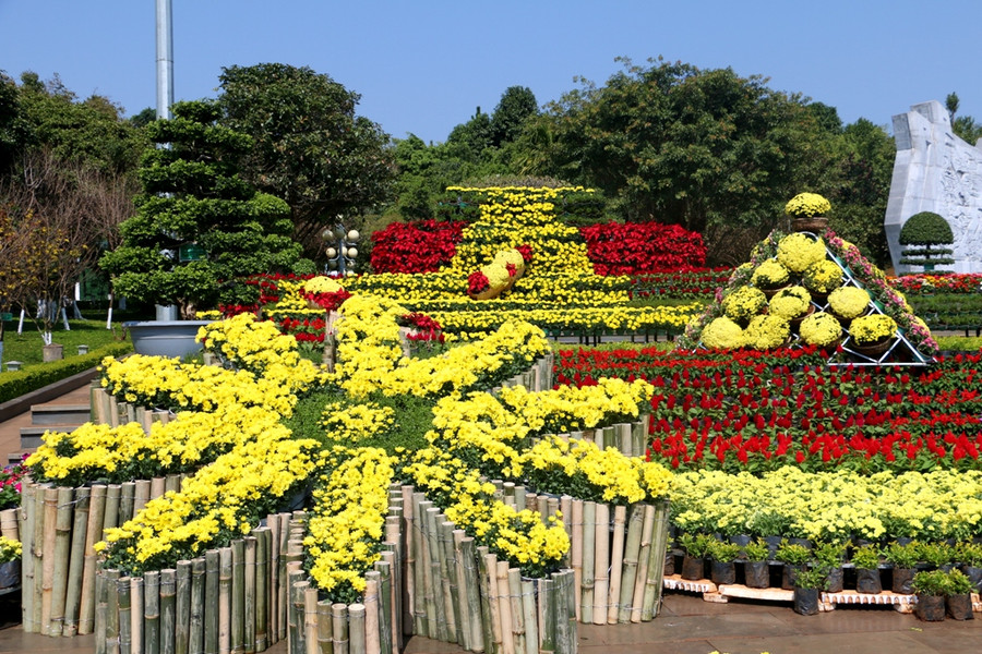 | Quảng trường Đại Đoàn Kết rực rỡ sắc hoa. |