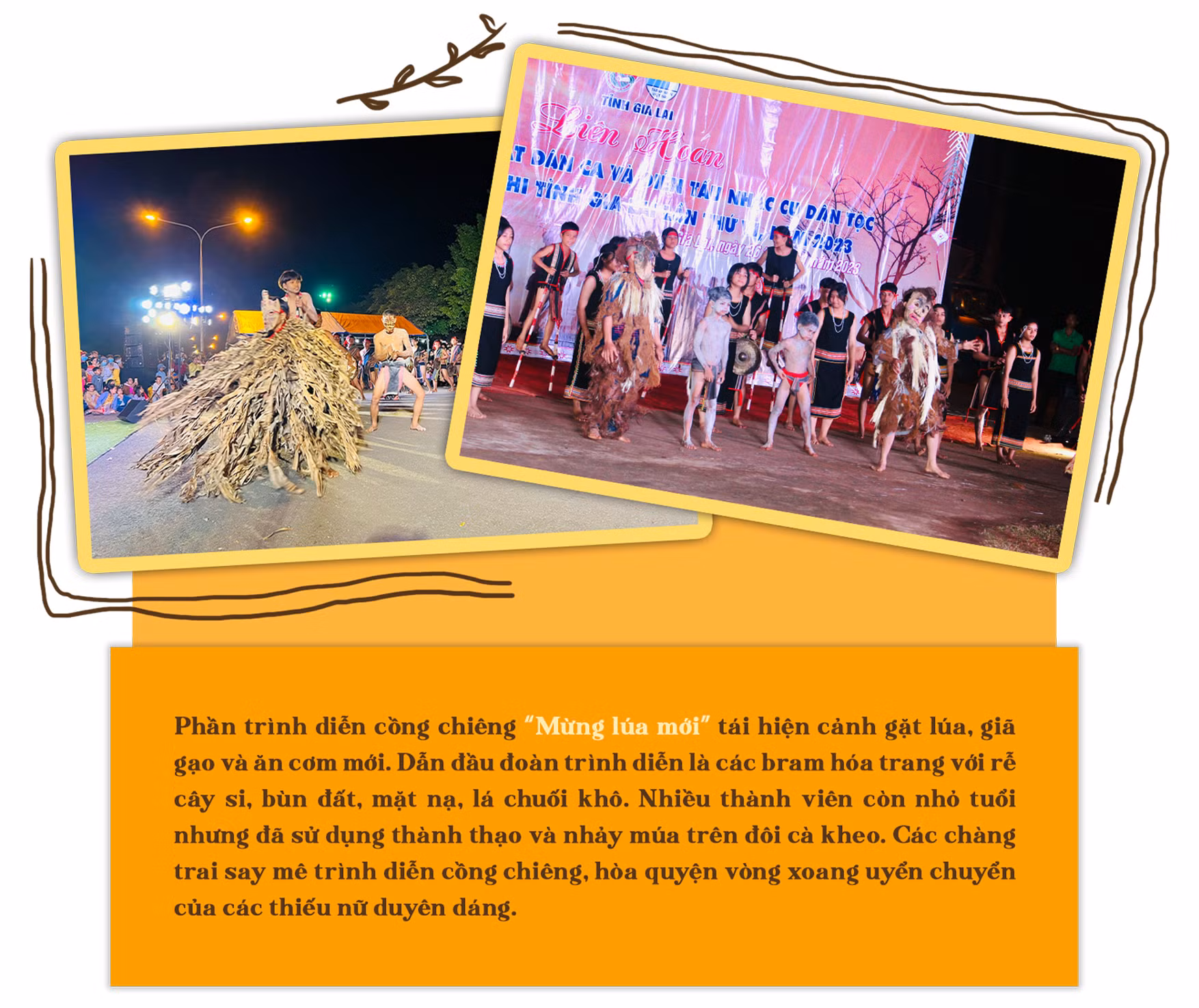 Tại thị xã An Khê, liên hoan được tổ chức tại Hội trường 23-3 (cũ) với sự tham gia của gần 200 nghệ nhân, diễn viên đến từ các huyện: Kông Chro, Đak Pơ, Kbang, Mang Yang và thị xã An Khê. Trong thời gian diễn ra liên hoan, dù thời tiết không mấy thuận lợi nhưng các đội đã hoàn thành tốt yêu cầu đề ra, tạo nên sự thành công trọn vẹn cho liên hoan. Để tái hiện thành công lễ hội, các đội đã tập luyện, chuẩn bị chu đáo đạo cụ mô hình nhà rông, cây nêu, ghè rượu; nghi thức cúng Yàng trong lễ hội mừng lúa mới, lễ đâm trâu, ăn lúa mới của người Bahnar phía Đông Trường Sơn.