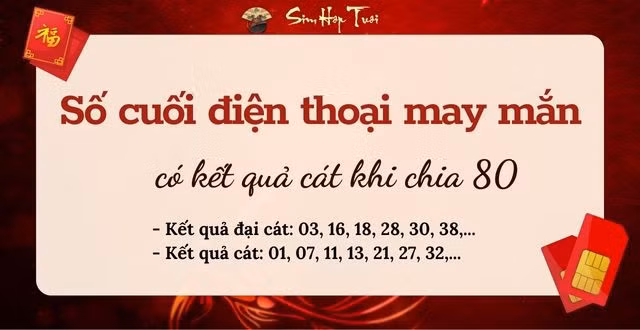 1. Số cuối điện thoại may mắn có kết quả cát khi chia 80