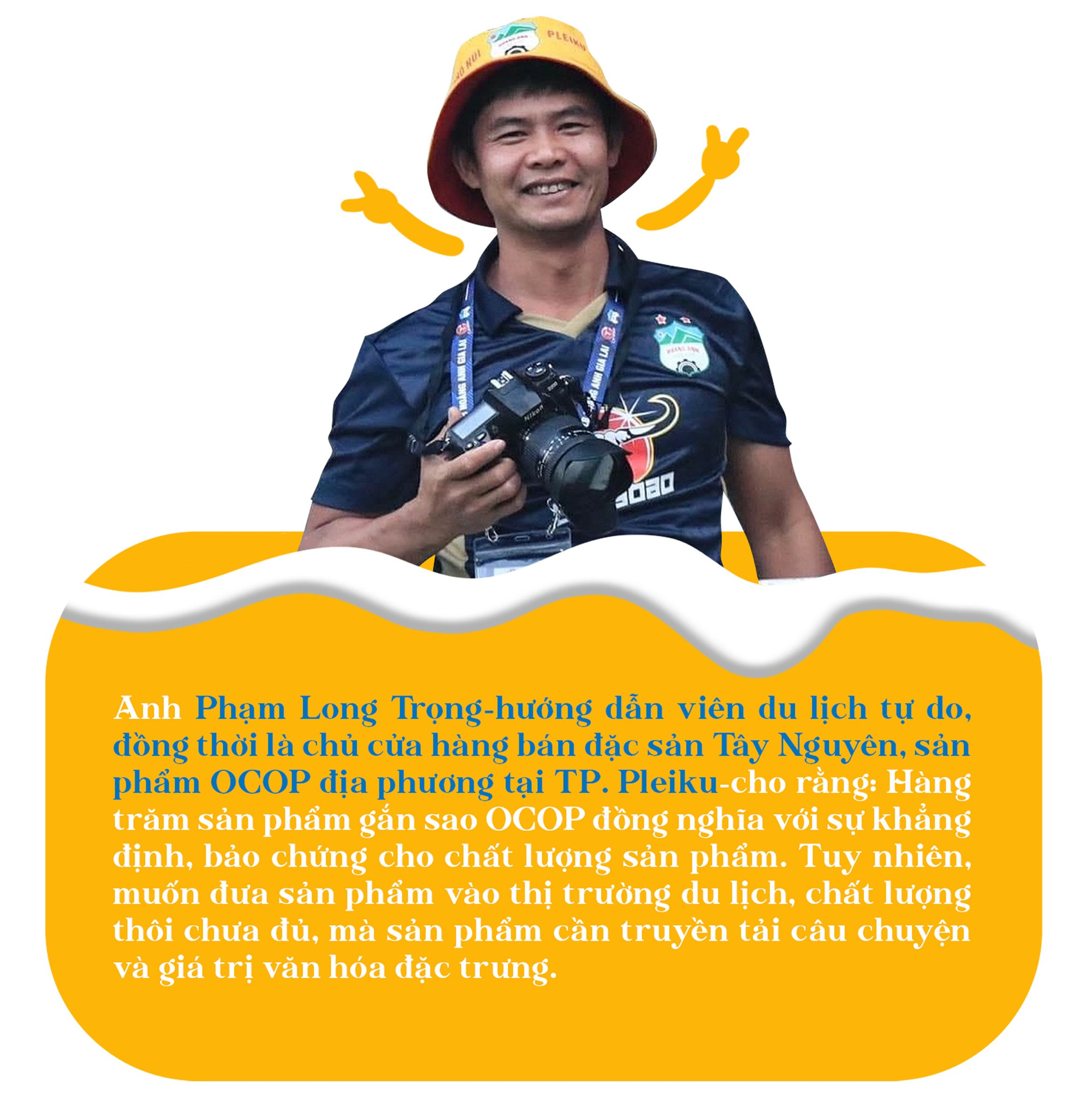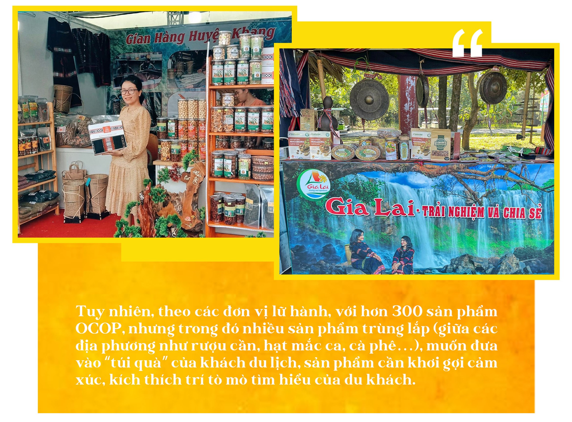 Mới đây, tại diễn đàn bàn giải pháp phát triển du lịch cộng đồng, anh Đinh A Ngưi-Giám đốc Công ty TNHH Dịch vụ du lịch A Ngưi (xã Kông Lơng Khơng) nhắc đến việc tiêu thụ nông sản và sản phẩm OCOP của địa phương. Anh cho rằng, gắn câu chuyện cho sản như thêm đôi cánh để sản phẩm có thể bay xa trong thị trường du lịch. “Tôi trực tiếp dẫn nhiều đoàn khách du lịch trải nghiệm các làng du lịch cộng đồng ở vùng Đông Trường Sơn. Các sản phẩm từ nghề thủ công truyền thống của người dân địa phương nếu chỉ để trưng trên kệ sẽ rất ít khách tìm hiểu và mua hàng. Nhưng nếu tôi kể câu chuyện văn hóa, đời sống người Bahnar gắn với sản phẩm đó thì nhiều khách rất hứng thú và sẵn sàng để mua. Do đó, bán sản phẩm OCOP, sản phẩm du lịch nông nghiệp chính là bán câu chuyện cho du khách”-anh A Ngưi nhấn mạnh.