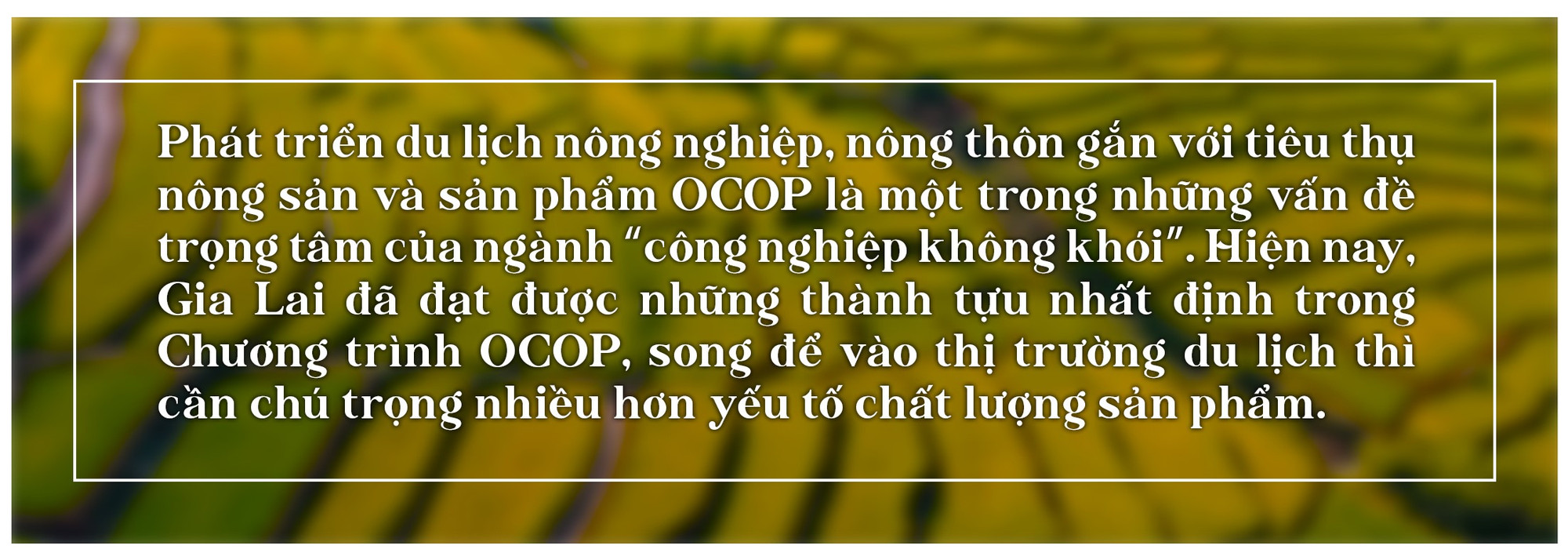 Theo ông Y Nguyên Ênuôl-Chi cục trưởng Chi cục PTNT: “Những thành tựu nổi bật trong Chương trình OCOP tại Gia Lai những năm qua là cơ sở mở ra con đường mới cho du lịch nông nghiệp. Chương trình này đã và đang định vị các sản phẩm nông nghiệp nông thôn tiêu biểu, giúp nhận diện bản sắc văn hóa đặc thù, tính địa phương. Nhiều sản phẩm đồng thời là những chỉ dẫn địa lý khi nâng tầm lợi thế địa phương như: gạo Phú Thiện, khoai lang Lệ Cần, tiêu đỏ hữu cơ Lệ Chí, bò một nắng Krông Pa, cà phê Đak Yang, thổ cẩm Glar...”.