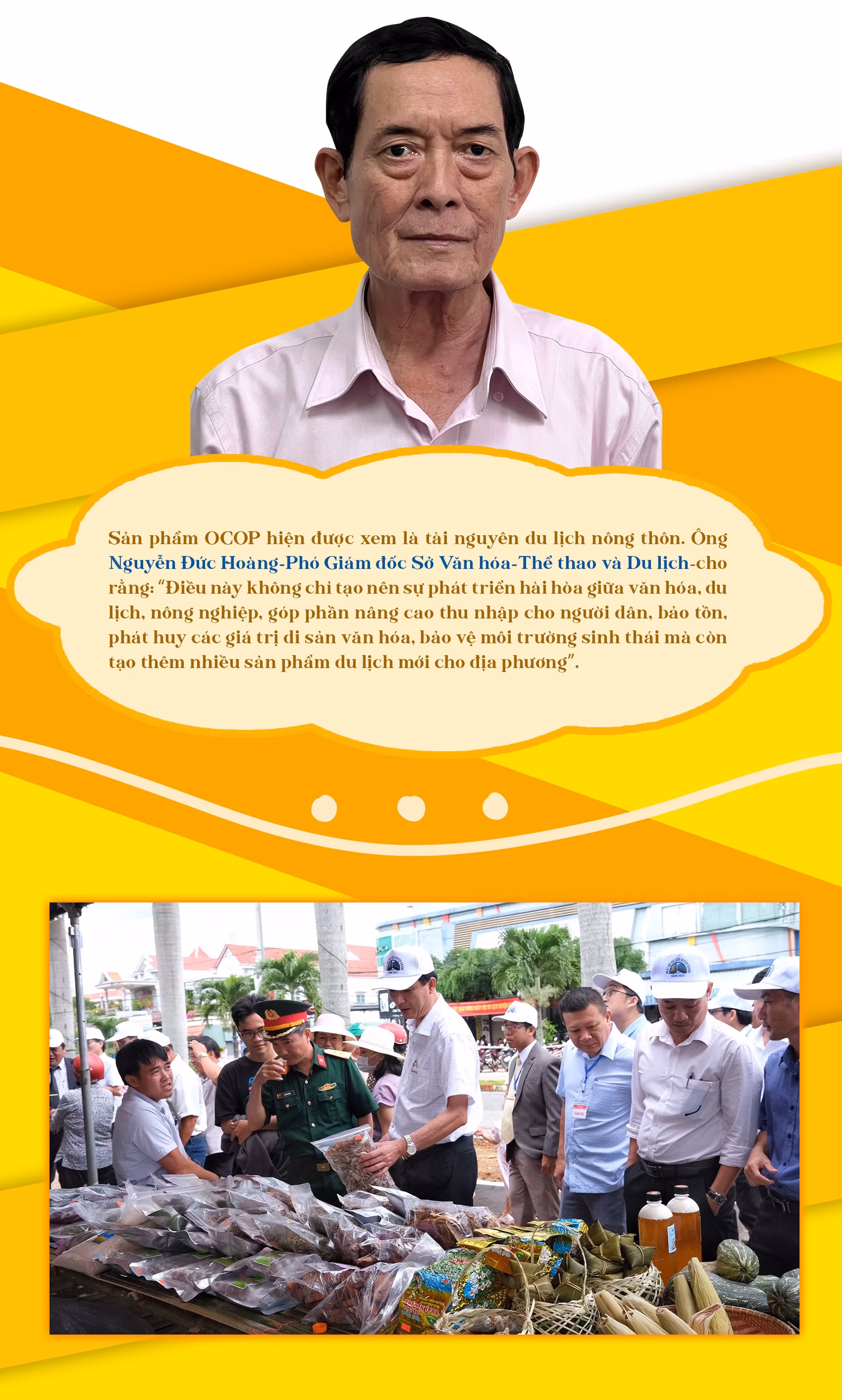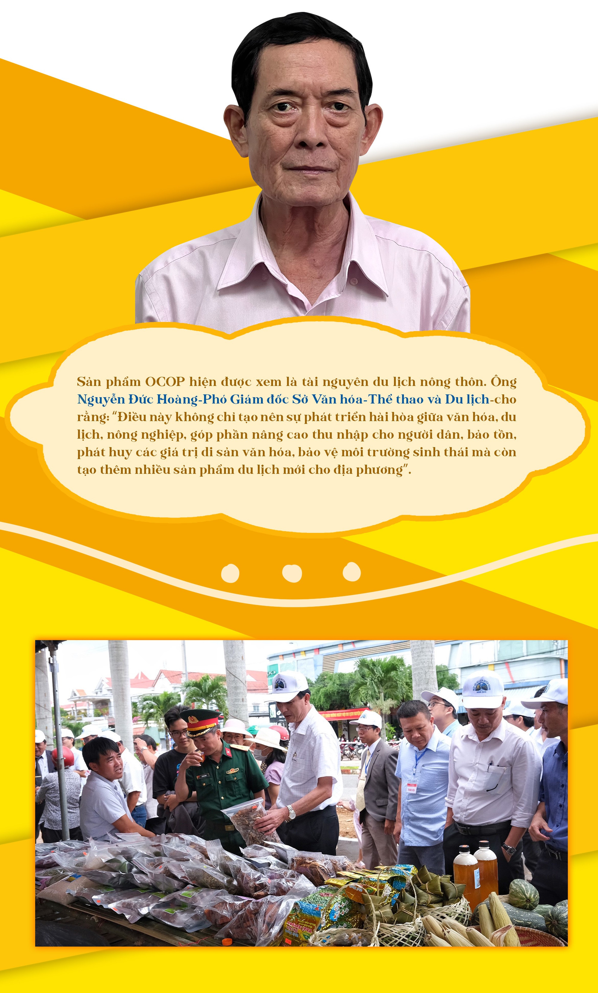 Ông Hà Trọng Hải-Giám đốc Công ty cổ phần Cao Nguyên Việt-cho rằng: “Sản phẩm hàng hóa muốn vào thị trường du lịch điều quan trọng nhất là phải mang tính đặc sắc bên cạnh giá trị sử dụng. Nếu tính khác biệt, độc đáo của sản phẩm “chỉ ở đây mới có” thì giá trị sử dụng rộng rãi khiến không chỉ người mua dùng được mà còn làm quà tặng cho bạn bè, người thân. Khi đó, số lượng sản phẩm bán ra mới nhiều, sức lan tỏa mới rộng rãi. Một khi tạo được thương hiệu cho sản phẩm thì sẽ mang đến lợi thế khác, như là gợi sự tò mò, dẫn dắt du khách về chính vùng đất đó để tìm hiểu. Và như vậy, sản phẩm OCOP và du lịch nông nghiệp, nông thôn là 2 yếu tố phát triển song hành, có sự hỗ trợ, tương tác qua lại”.