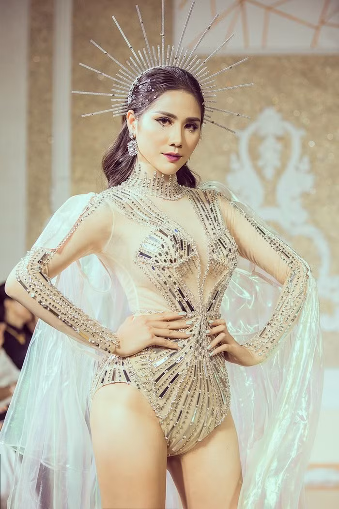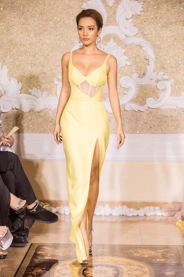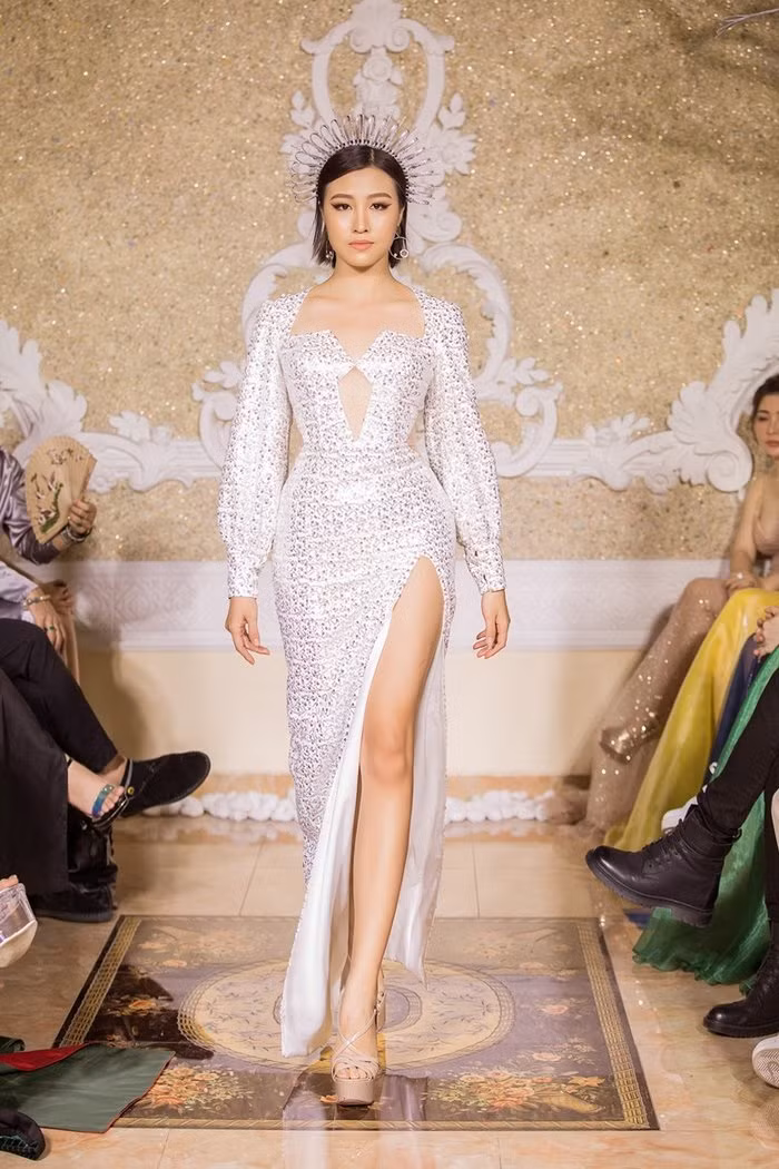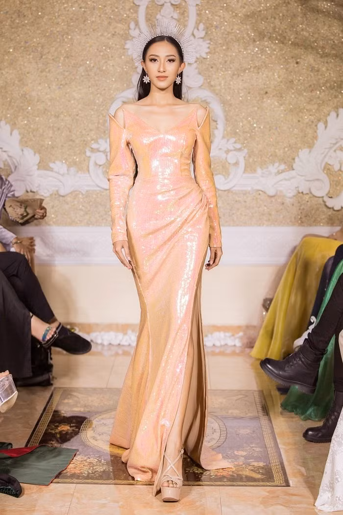 Tiểu Vy xuất hiện trong bộ váy xuyên thấu ôm sát, các chi tiết đính kết công phu càng làm tôn lên nhan sắc của người đẹp.