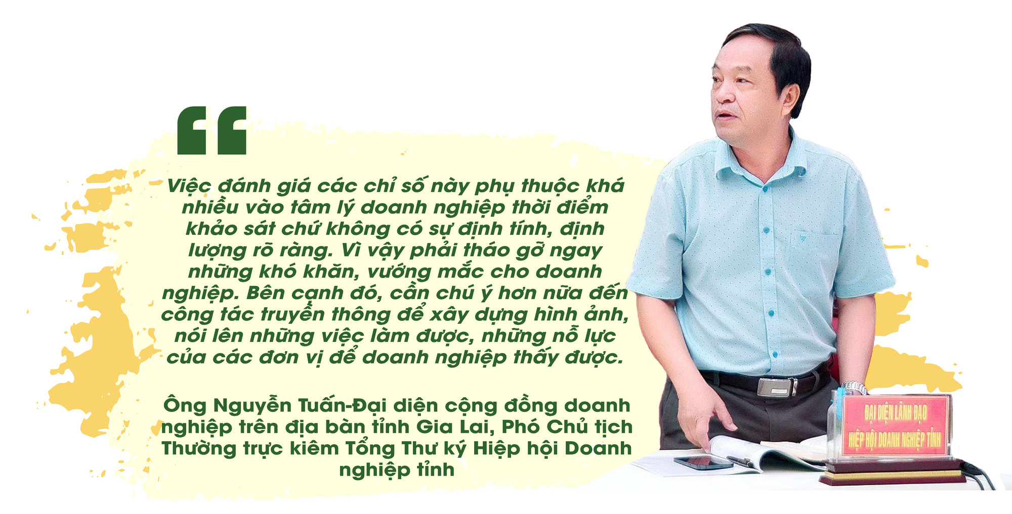 Còn Phó Giám đốc VCCI Đà Nẵng thì đề xuất: Gia Lai nên tiếp tục cải thiện chỉ số chi phí thời gian; hạn chế thanh tra, kiểm tra; thực hiện chuyển đổi số đồng bộ trong các cơ quan, đơn vị, đồng thời tăng cường cơ chế hỗ trợ doanh nghiệp, phổ biến Luật Hỗ trợ doanh nghiệp nhỏ và vừa, các hiệp định thương mại tự do CPTPP và các FTA.