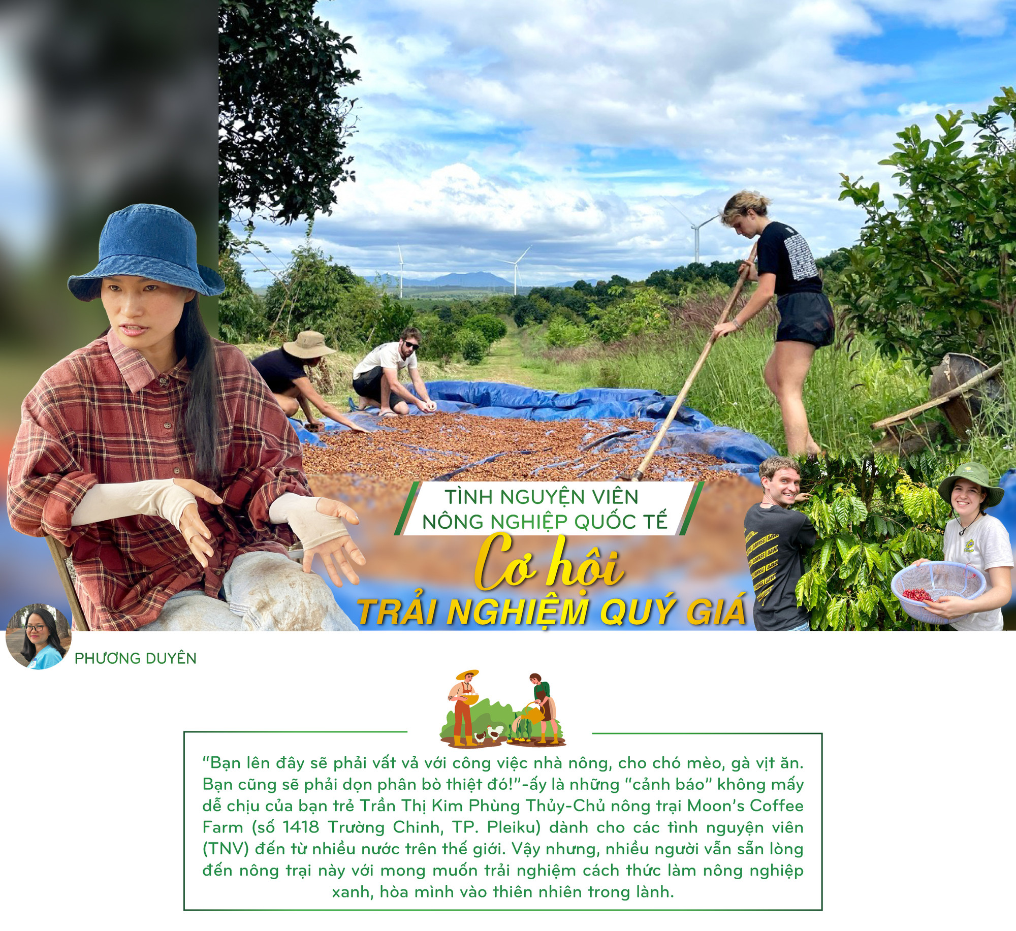 Lý giải thêm về dự án, cô gái tốt nghiệp Khoa Ngoại ngữ (Đại học Duy Tân-TP. Đà Nẵng) từng có 3 năm làm việc trong một công ty chuyên sản xuất cà phê đặc sản ở Đà Lạt-cho biết: Qua trang web Workaway, chị và các TNV “tìm thấy nhau” khi nông trại đăng thông tin tuyển TNV, các TNV cũng mong muốn tìm kiếm cơ hội trải nghiệm. Qua 3 bước tuyển dụng chặt chẽ, các TNV sẽ đến nông trại. Nông trại cung cấp chi phí sinh hoạt, ăn ở hàng ngày, kể cả cà phê, wifi cho TNV; đổi lại, đội ngũ nhân công đặc biệt này làm việc từ 6 đến 8 tiếng/ngày để chăm sóc vườn tược, vật nuôi, trồng cây, thu hoạch cà phê, chăm sóc nhà cửa… Qua hơn 2 năm vận hành, Thủy đã đón khoảng 200 TNV trong nước và quốc tế. Đây là mô hình đang rất phổ biến trên thế giới, nhất là ở những nước như Israel hay Úc; tại Việt Nam thì Đà Lạt là thành phố tiên phong.