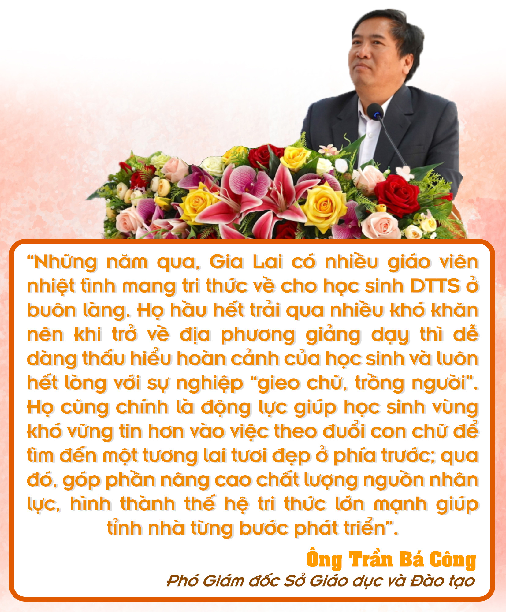 Tính đến hết năm học 2023-2024, toàn ngành Giáo dục tỉnh Gia Lai có 2.733 cán bộ, công chức, viên chức người DTTS; 100% đạt chuẩn theo yêu cầu của vị trí việc làm.