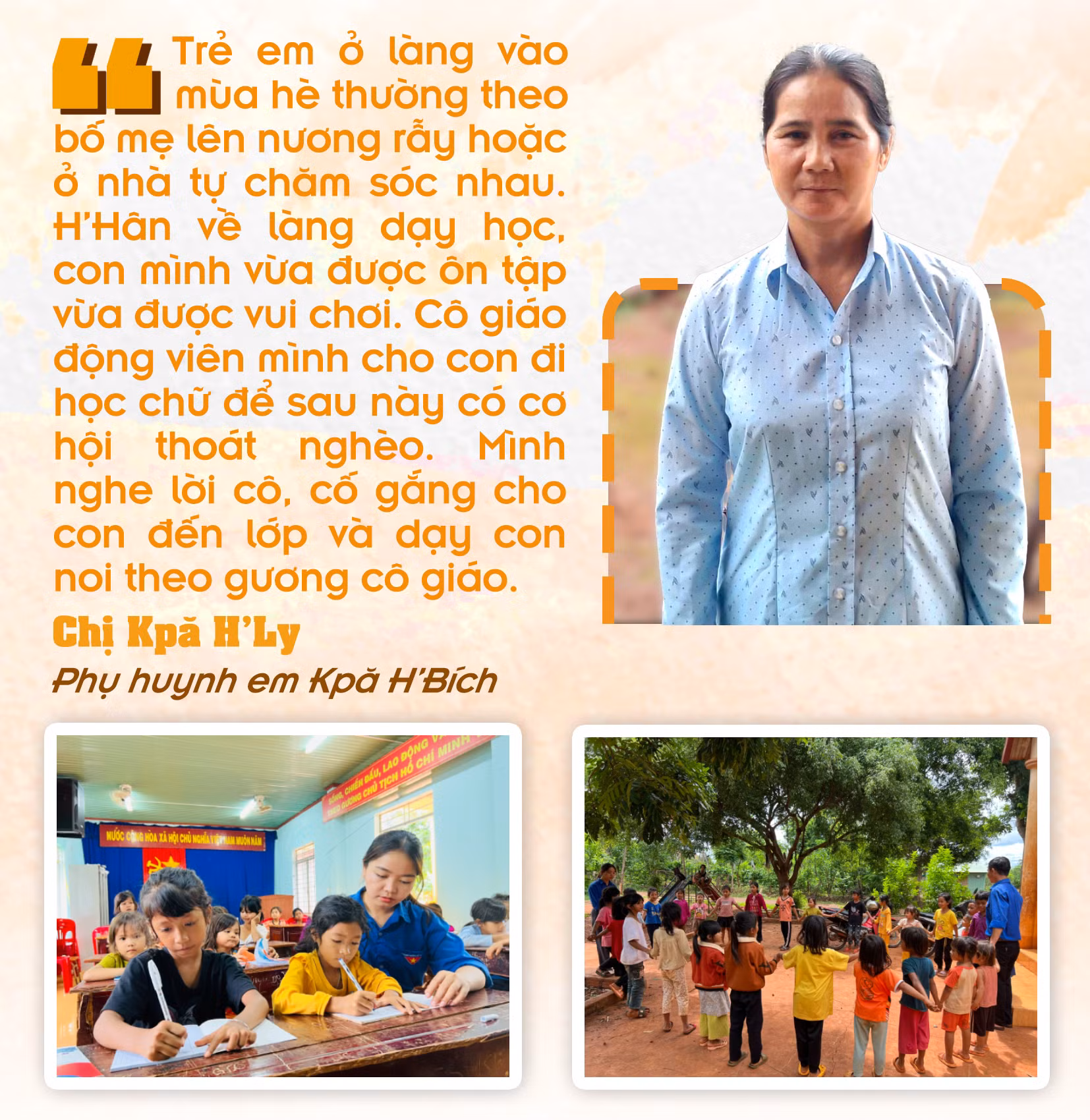 Song song với ôn luyện kiến thức, H’Hân còn dạy hát, bồi dưỡng kỹ năng giao tiếp trước đám đông, phòng tránh tai nạn thương tích, đuối nước cho trẻ. Khóa học hè kết thúc, phụ huynh đều bày tỏ sự cảm kích trước sự tận tâm của cô giáo trẻ.