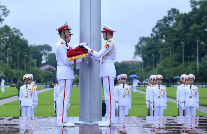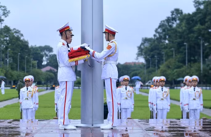 Tối nay 14-8, không có lễ hạ cờ như thường lệ mà lá cờ rủ sẽ được treo liên tục trong 2 ngày Quốc tang 14 và 15-8.