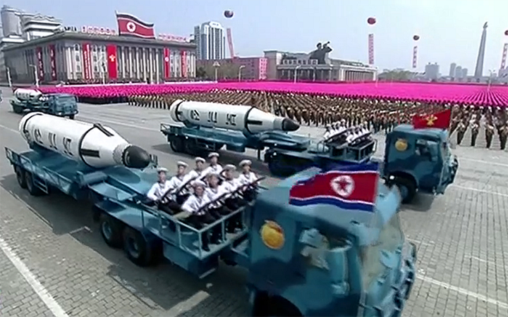Lễ diễu binh phô diễn sức mạnh quân sự với việc ra mắt những quả tên lửa mới là điểm nhấn trong hoạt động kỉ niệm ngày sinh cố Chủ tịch Kim Nhật Thành.