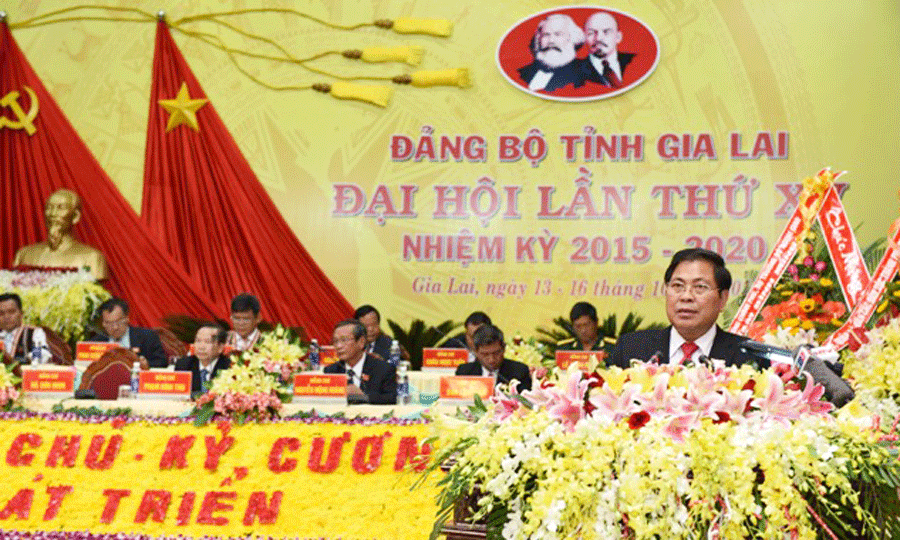Trong không khí thi đua hướng tới Đại hội toàn quốc lần thứ XII của Đảng, sau thời gian chuẩn bị tích cực, chu đáo, với sự tập trung cao trí tuệ của toàn Đảng bộ; được sự nhất trí của Bộ Chính trị, Ban Bí thư Trung ương Đảng, hôm nay Đảng bộ tỉnh Gia Lai trọng thể khai mạc Đại hội đại biểu lần thứ XV, nhiệm kỳ 2015 - 2020. Đây là một sự kiện hết sức quan trọng trong đời sống chính trị của Đảng bộ, chính quyền và nhân dân các dân tộc tỉnh nhà.