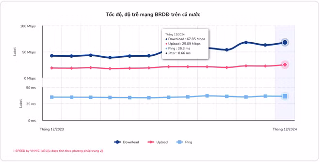 Nhìn vào bức tranh toàn cảnh, trong tháng 12/2024, số liệu cho thấy chất lượng mạng băng rộng cố định đã có sự tăng trưởng mạnh mẽ.