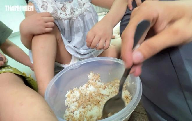 Không chỉ vậy, khẩu phần ăn của trẻ tại mái ấm khiến chúng tôi không khỏi xót xa. Mỗi ngày, hàng chục trẻ em phải tranh nhau ăn chung bát cơm trắng; hôm nào may mắn lắm sẽ được chan thêm nước tương, mì gói trộn cơm hoặc miến băm nhỏ, một ít thịt. Bé nào lanh lẹ, tranh giỏi thì được ăn nhiều và ngược lại.