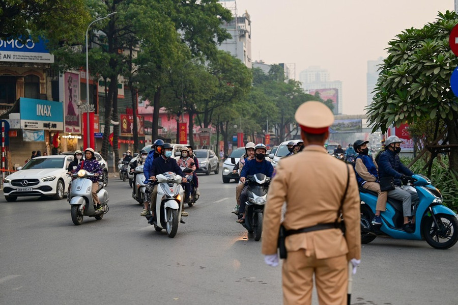 Thời điểm đoàn xe đi qua, lực lượng cảnh sát tạm thời dừng các phương tiện theo lề đường bên phải và tại các ngõ nhỏ