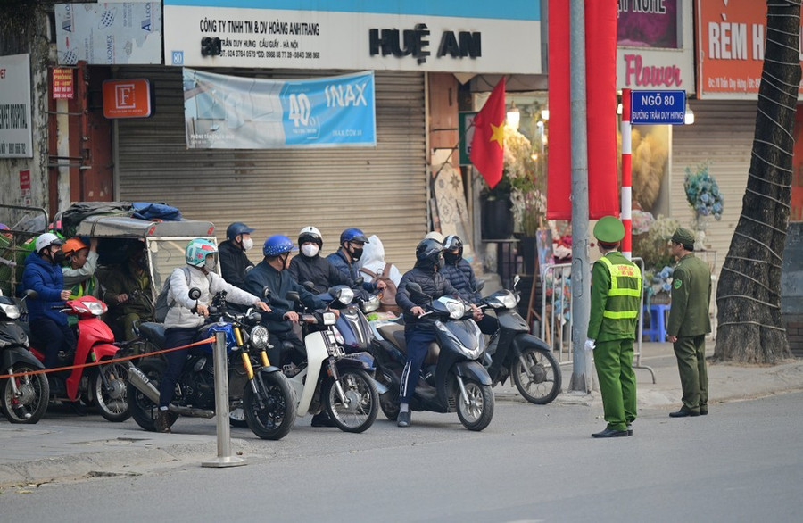 Tại thực địa, các lực lượng cảnh sát giao thông, an ninh trật tự, công an phường và dân phòng được huy động để chốt chặn các ngõ giao với đường Trần Duy Hưng.