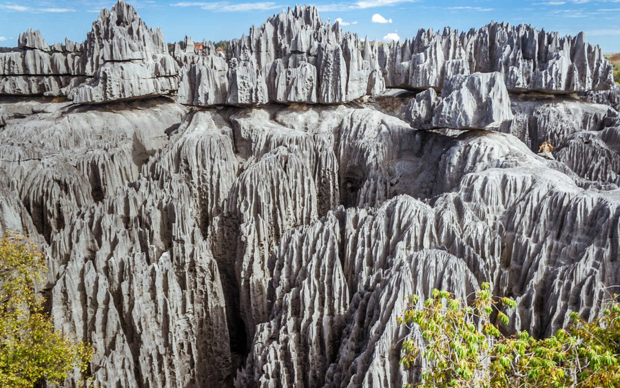 Công viên quốc gia Tsingy de Bemaraha là khu rừng đá lớn nhất thế giới, nằm tại Madagascar. Công viên là một mê cung kỳ lạ của những ngọn tháp sắc như dao cạo, khe núi hẹp và hang động ẩn giấu những điều bí mật. Nơi đây rất sống động với động vật hoang dã như vượn cáo, vẹt và thằn lằn có thể xuất hiện giữa các tháp đá răng cưa.