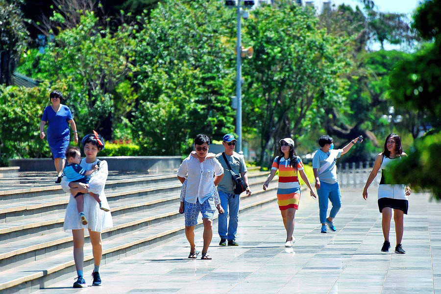 Tại công viên Diên Hồng, đông đảo du khách và người dân đến để tham quan chụp ảnh lưu niệm cùng gia đình trong dịp lễ 30-4 và 1-5.