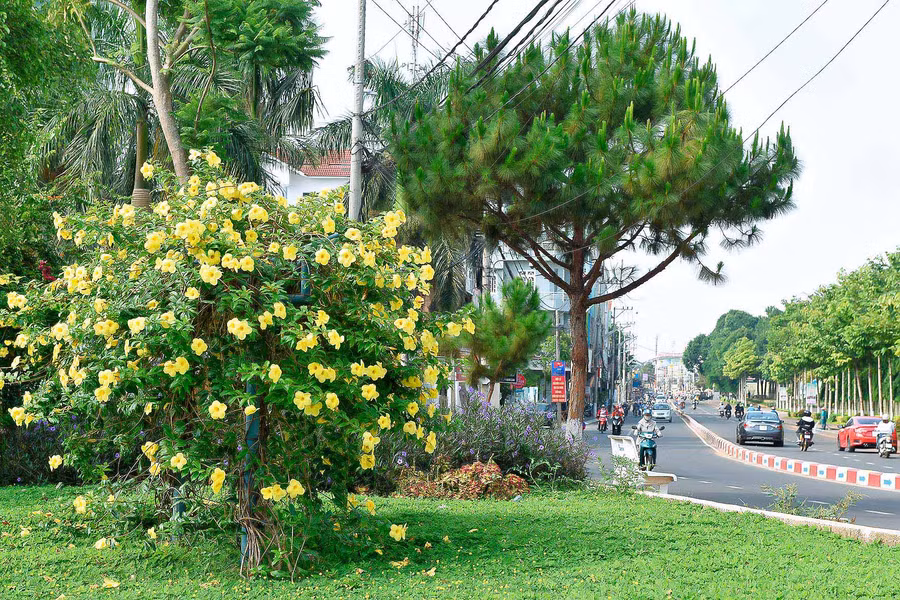 Cùng với phượng đỏ, bằng lăng tím, TP. Pleiku  giờ có thêm sắc vàng của hoa Điệp khi hè sang.