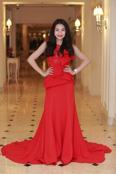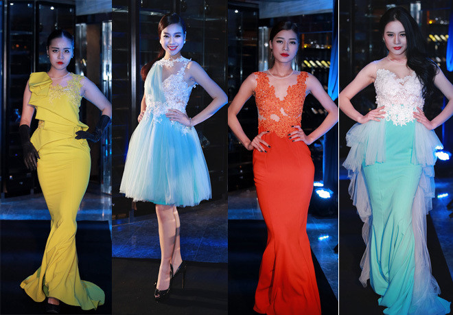 Nữ ca sĩ gây chú ý khi thay hai trang phục trong buổi ra mắt bộ sưu tập đầm dạ hội của Cao Minh Tiến tại Hà Nội.