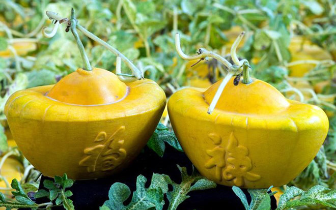 Dưa hấu vốn là một loại quả quen thuộc trong mâm ngũ quả ngày Tết, nhưng dưa hấu nổi với những hình thù sắc nét nổi lên rõ ràng trên làn da nhẵn bóng, vô cùng bắt mắt lại là thứ quả mới lạ. Trái dưa có hoa văn nổi không chỉ đẹp mà còn tươi lâu.