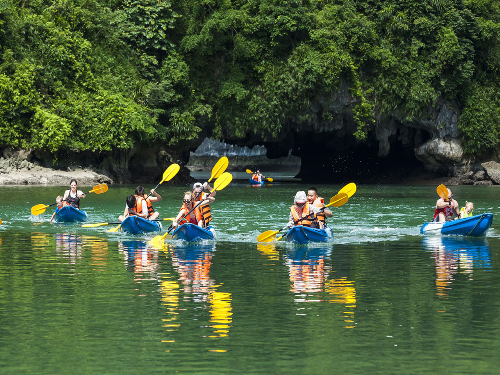 Một trong những hoạt động sôi nổi và hấp dẫn trong toàn bộ hành trình tour của du khách là tự do khám phá Hạ Long bằng thuyền kayak… Tham gia hoạt động này, du khách sẽ rèn luyện thể lực khi tự tay chèo thuyền vượt qua nhiều hang động thú vị.