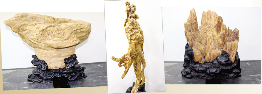 | Các tác phẩm trầm hương tự nhiên điêu khắc của ông Nguyễn Tấn Việt. Ảnh: Quang Viên |