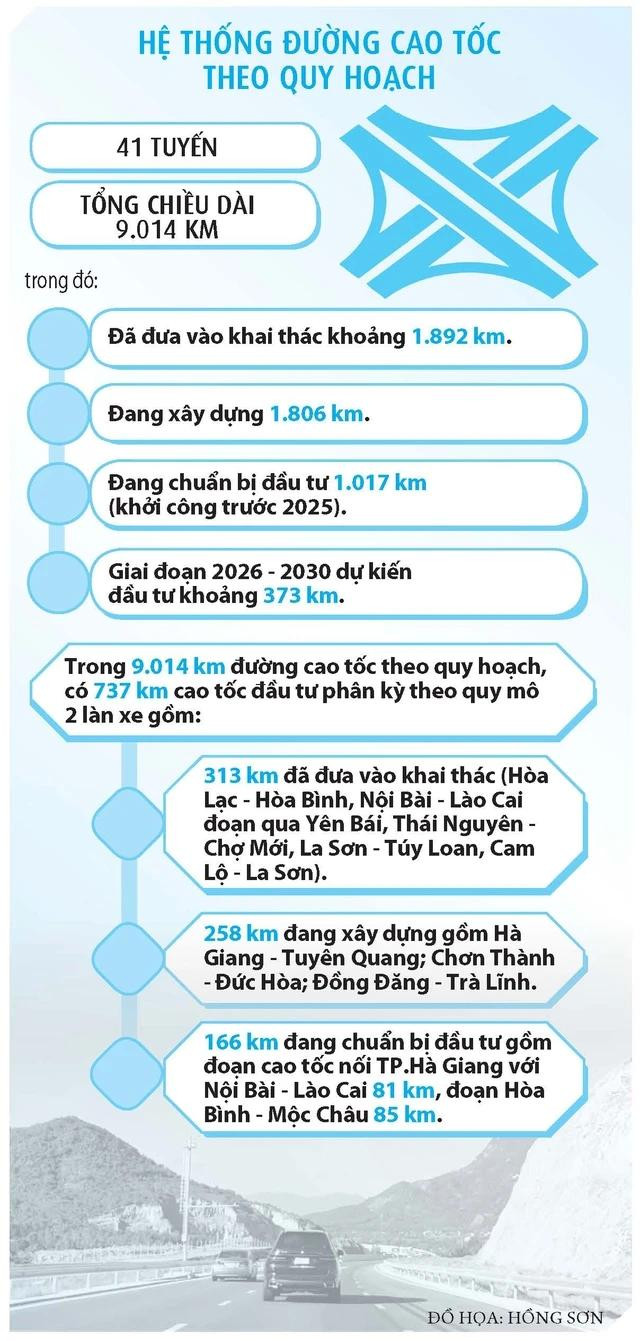 "Thực tế, quy hoạch mạng lưới cao tốc của VN từ trước đến nay vẫn là tối thiểu 4 làn xe. Tuy nhiên giai đoạn kinh tế đang phát triển, nguồn lực đầu tư hạn chế, không chỉ VN mà một số quốc gia cũng đã xây dựng và khai thác các tuyến cao tốc giai đoạn đầu với quy mô 2 làn xe. Bộ GTVT đã chỉ đạo các cơ quan, đơn vị rà soát tổng thể các tuyến cao tốc đầu tư phân kỳ, đặc biệt là các tuyến cao tốc phân kỳ với quy mô 2 làn xe, đánh giá những tồn tại, hạn chế để xây dựng kế hoạch, giải pháp phù hợp nhanh chóng nâng cấp bảo đảm quy mô 4 làn xe theo chỉ đạo của Thủ tướng Chính phủ", ông Huy cho biết.