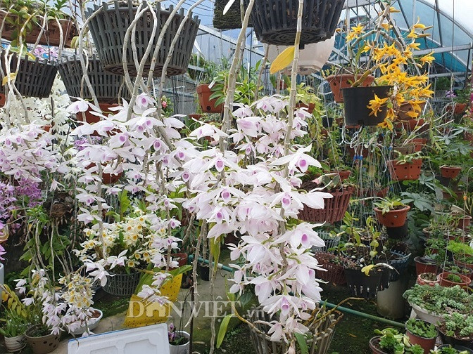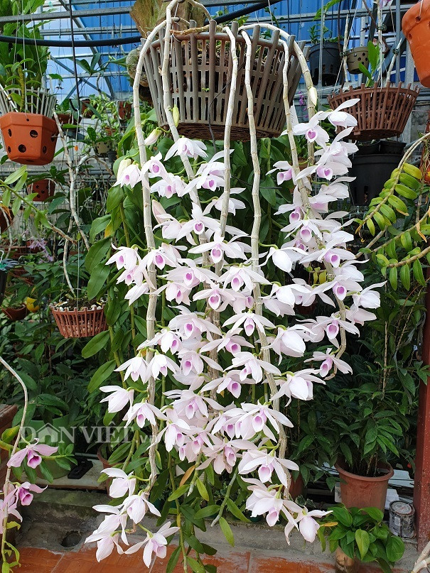 Chia sẻ với phóng viên, chị Hoài cho biết thêm: “Trồng hoa lan muốn đẹp thì người trồng phải hiểu được đặc tính của từng loại hoa lan khác nhau, nhất là các loài lan giả hạc đột biến 5 cánh trắng, từ đó thiết kế vườn treo đảm bảo điều kiện về ánh sáng, không gian thoáng. Khâu chăm sóc hoa lan rừng rất quan trọng: Phun tưới nước vừa đủ, bón phân đúng giai đoạn và ép cho hoa nở cũng cần phải có kỹ thuật”.