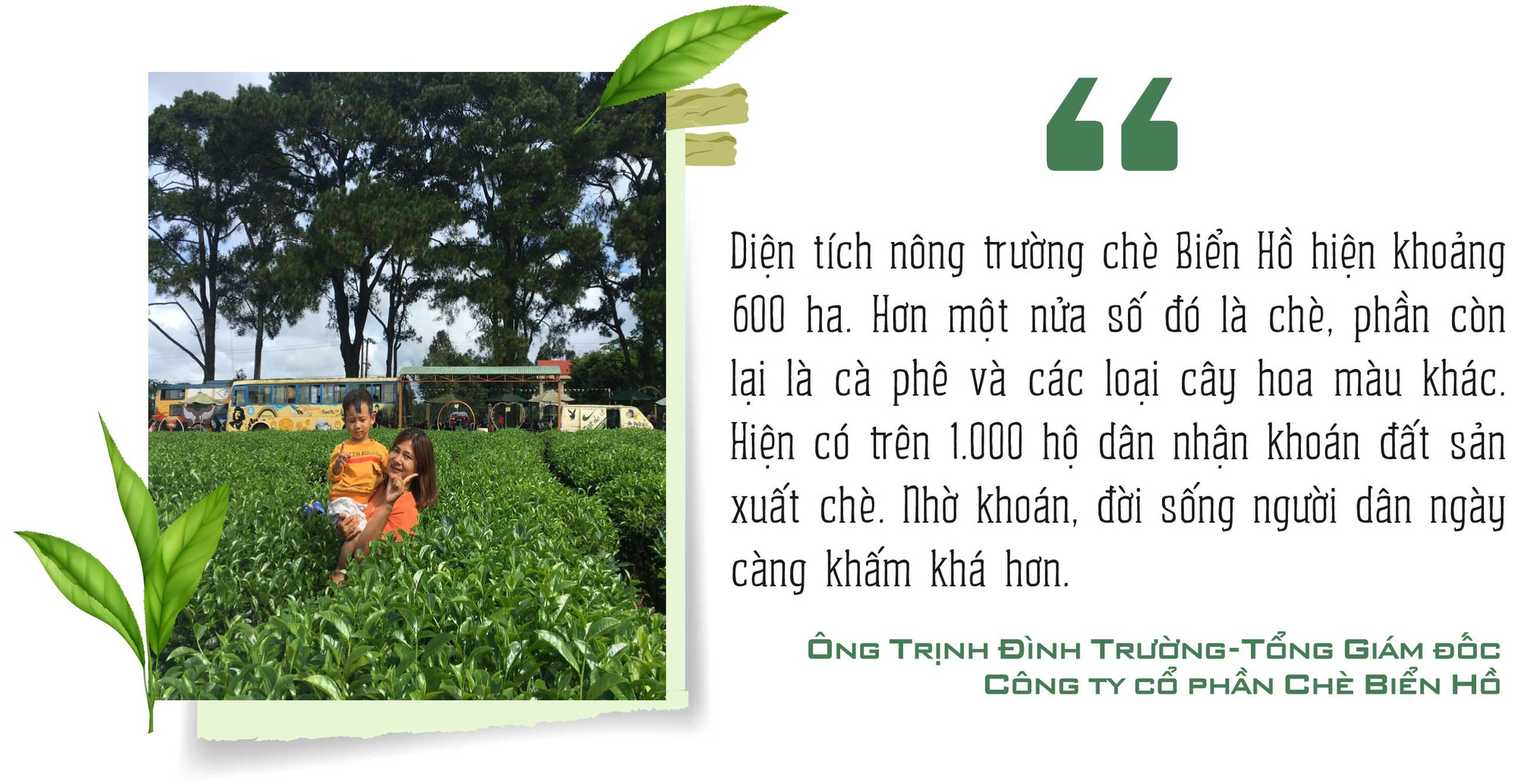 Mô hình tổ chức sản xuất chè tại Biển Hồ có nhiều thay đổi qua từng thời kỳ. Từ đồn điền thời Pháp thuộc đến nông trường, xí nghiệp sau ngày đất nước thống nhất, rồi sau này là công ty cổ phần. Vị thế của người dân gắn với cây chè cũng dần thay đổi, từ thân phận nông phu đã trở thành người làm chủ trên mảnh đất mà gia đình nhiều đời gắn bó. Chìa khóa mang tính quyết định là giao đất cho chính những người công nhân hái chè và thực hiện khoán sản phẩm. Người nhận khoán trồng, chăm sóc, thu hoạch và cung cấp nguyên liệu, còn công ty bao tiêu đầu ra. Nhờ vậy, người dân yên tâm sản xuất và có trách nhiệm cao với cây chè nên sản lượng cũng như chất lượng nguyên liệu được nâng lên.