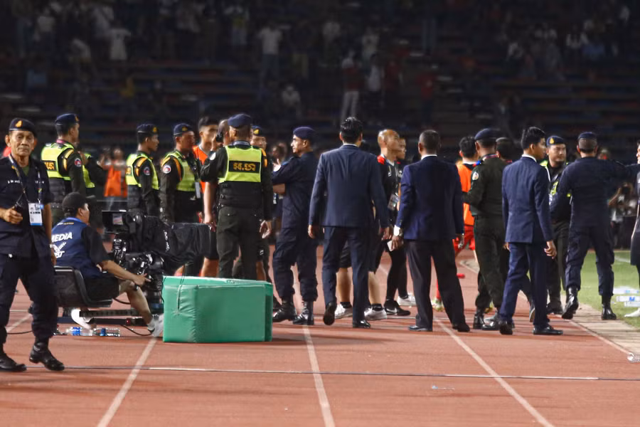 | Hình ảnh xấu xí trong trận chung kết được chờ đợi nhất SEA Games 32. Ảnh: Hà Phương |