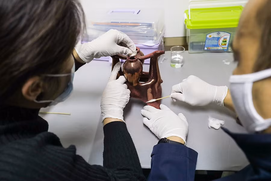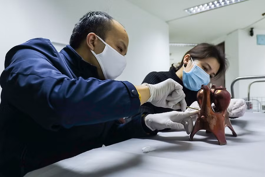Có những hiện vật đã phải trải qua một hành trình rất dài trước khi được đưa đến bảo tàng. Có những hiện vật, theo thời gian đã bị ôxy hoá, đặc biệt là những quyển sách, tài liệu giấy - những chất liệu dễ hư hỏng theo thời gian. Đó cũng chính là thách thức đối với những người làm công tác bảo quản khi phải lên kế hoạch, nghiên cứu và phân tích đánh giá tình trạng của từng hiện vật rồi mới có thể tiến hành bảo quản, tu sửa sao cho vẫn giữ gìn hiện vật một cách nguyên vẹn nhất có thể.
