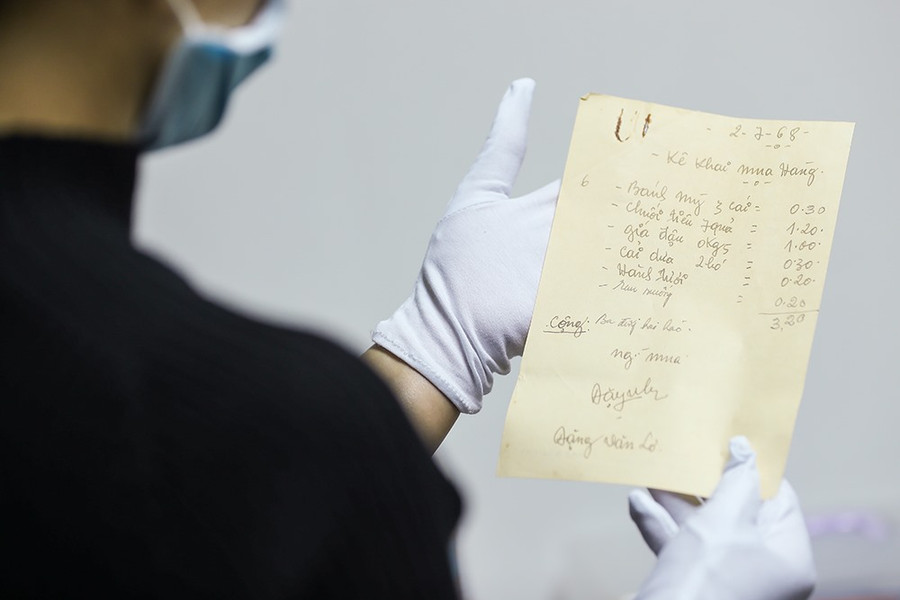 “Những ai làm kiểm kê, bảo quản hiện vật đều phải rất tỉ mỉ, cẩn thận. Bởi sai một chút thôi là không thể cứu vãn được nữa”, chị Hường vừa nói vừa nâng niu tờ hoá đơn mua đồ cho bếp ăn của Bác - một trong những kỷ vật theo chị là biểu hiện chân thực nhất cho sự giản dị của vị cha già dân tộc.