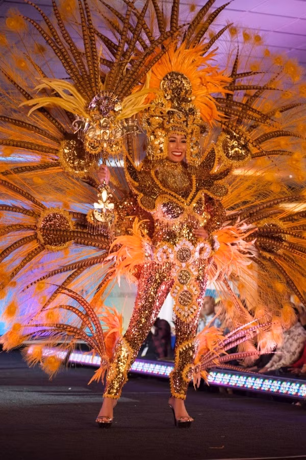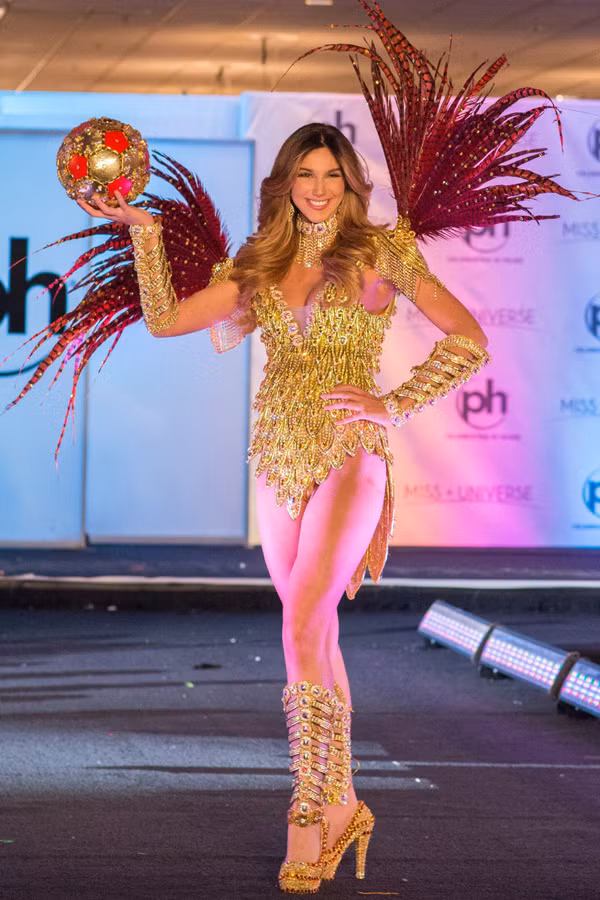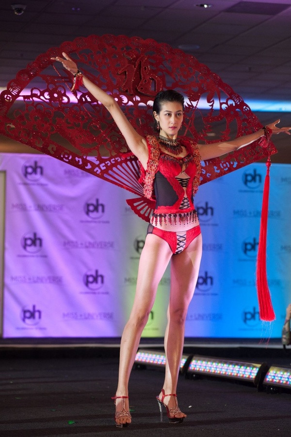 Nhiều thí sinh mặc sexy trong phần thi Trang phục dân tộc diễn ra tại Las Vegas, Mỹ tối 18-11 (giờ địa phương).