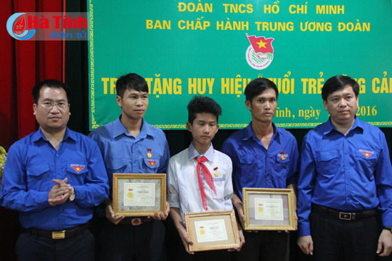 Nhân chuyến thăm, tặng quà người dân vùng lũ Hà Tĩnh chiều 18-10, đoàn công tác Trung ương Đoàn do Bí thư Nguyễn Long Hải dẫn đầu đã trao huy hiệu “Tuổi trẻ dũng cảm” cho anh Võ Phong (34 tuổi), anh Võ Huân (28 tuổi), cùng ở thôn Đông Huề, xã Vượng Lộc (Can Lộc) và em Đặng Quốc Vinh, ở xã Tân Lộc (Lộc Hà) vì đã dũng cảm cứu người trong lũ.