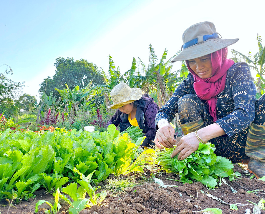 | Song song với thu hoạch, người dân làng Ơp cũng bắt đầu xới đất, vun luống để chuẩn bị sản xuất vựa rau tiếp theo. Việc trồng rau được bà con duy trì gối đầu quanh năm và là một nghề đem lại thu nhập ổn định cho các gia đình. |