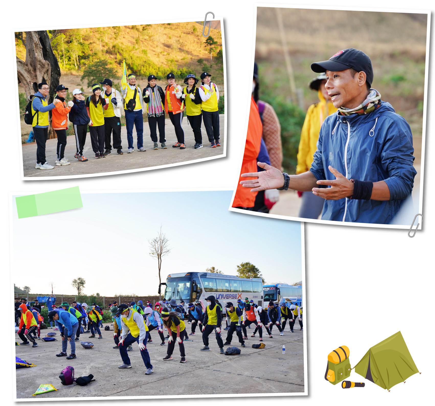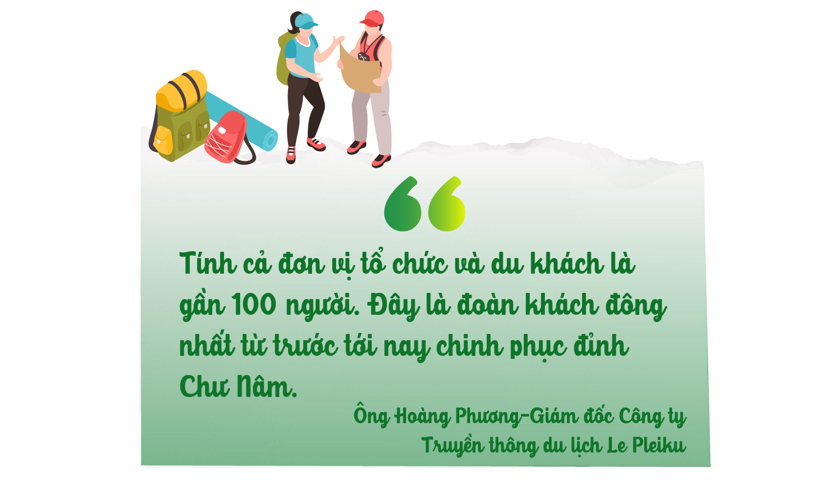 Sau khi chinh phục đỉnh núi, các thành viên hạ trại, tham gia trò chơi, giải mật thư... Trong điều kiện địa hình khó khăn, không có sóng điện thoại, tất cả đều phải dựa vào khả năng xử lý tình huống của mỗi cá nhân. Trò chơi phát huy tối đa tinh thần đồng đội và khả năng làm việc nhóm của các thành viên. Chính những điều này đã tạo nên trải nghiệm thú vị cho du khách. Ông Hoàng Phương-Giám đốc Công ty Truyền thông du lịch Le Pleiku-cho biết, để phục vụ chu đáo đoàn team building, Công ty đã huy động gần 30 nhân lực. Ngoài các support (khuân vác, hỗ trợ du khách) còn có nhân viên y tế, hậu cần, truyền thông…