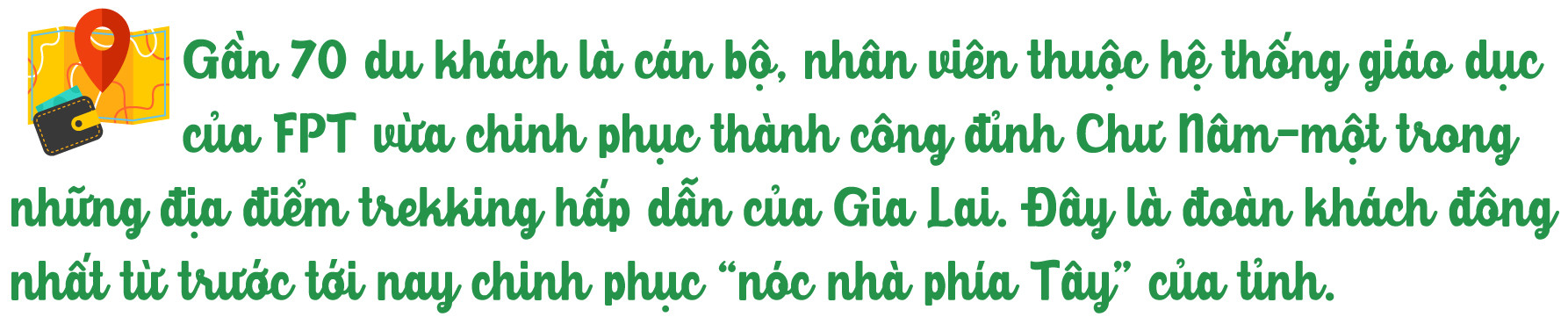 Chương trình huấn luyện của FPT theo hình thức team building-loại hình du lịch vừa trải nghiệm thiên nhiên, vừa rèn luyện kỹ năng. Tổng chiều dài của cung đường trekking là 8 km. Các thành viên khi chinh phục thành công đỉnh núi Chư Nâm sẽ được trao huy chương chứng nhận hoàn thành thử thách, vượt qua bản thân. Phần thưởng cho mỗi người còn là view ngắm cảnh 360 độ từ trên đỉnh núi, ngắm “mắt ngọc” Biển Hồ, đập Tân Sơn, núi lửa Chư Đang Ya, xa hơn là phố núi Pleiku.