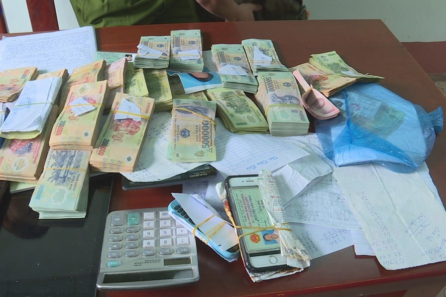 Số tiền công an thu giữ tại hiện trường. Ảnh: Lin Xong