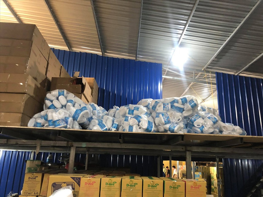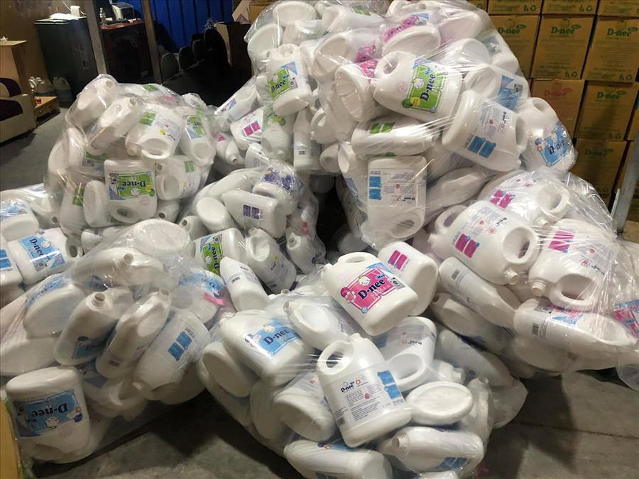 Tại cơ sở sản xuất, lực lượng chức năng đã thu giữ hàng nghìn can nước giặt loại 3,5 lít mang nhiều thương hiệu khác nhau. Nhiều thùng hàng đã thành phẩm, nhiều can nhựa, nhãn mác, thùng để đóng thành phẩm cùng nguyên vật liệu hoá chất phục vụ cho quá trình sản xuất.