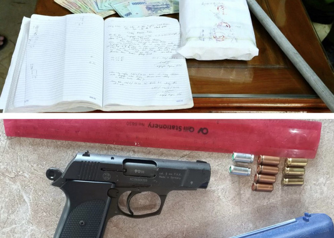 Cơ quan công an đã thu giữ hơn 26 triệu đồng, 1 cây đao tự chế, 1 khẩu súng bắn đạn cao su và một số sổ sách, tài liệu có liên quan.