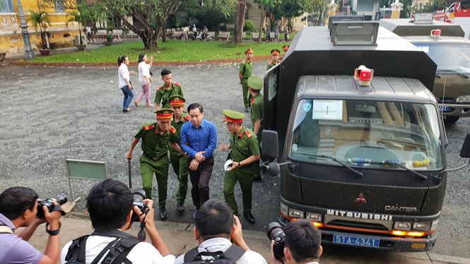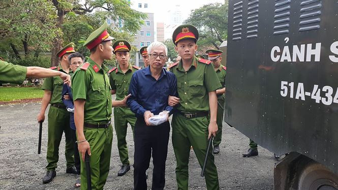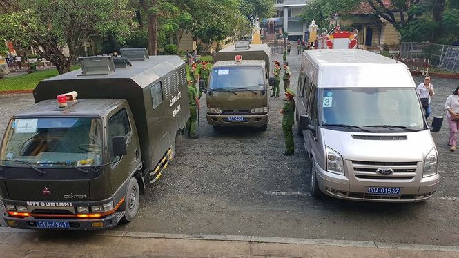 Cảnh sát dẫn giải Vũ "nhôm" đến tòa. Ảnh Văn Minh.
