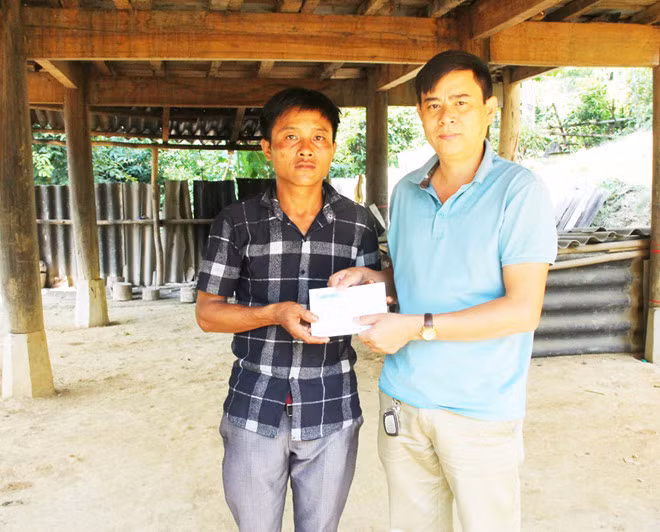 PV Báo Thanh Niên trao tiền bạn đọc giúp đỡ bố con anh Lương Văn Hồng sau khi vợ anh Hồng chết vì gặp tai nạn trên đường đi bán con