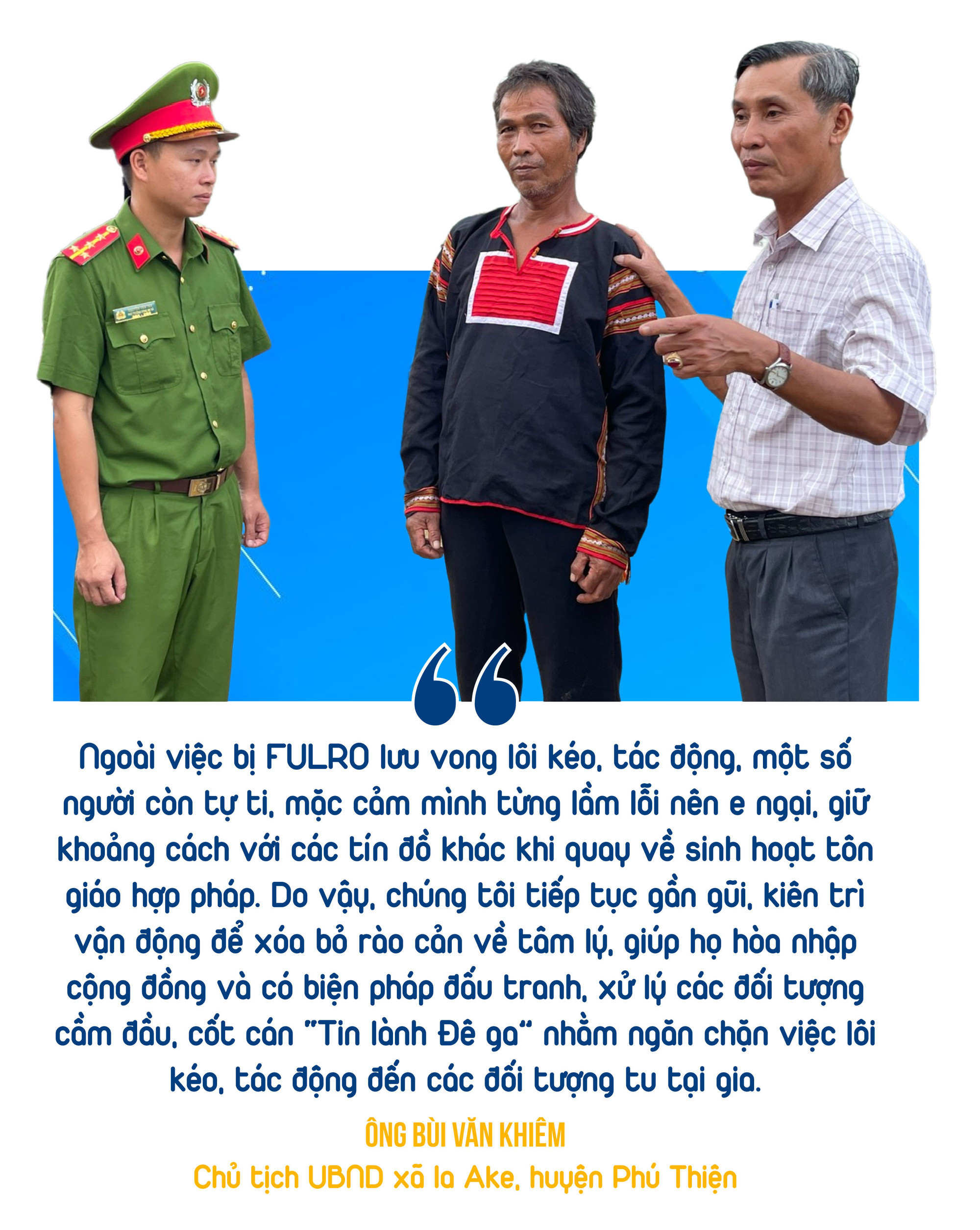 Chủ tịch UBND xã Ia Ake cho rằng, để xóa bỏ tổ chức phản động FULRO, “Tin lành Đê ga”, ngoài công tác lãnh đạo, chỉ đạo quyết liệt của cấp ủy, chính quyền, Công an các cấp thì cần có sự vào cuộc tích cực của cả hệ thống chính trị từ xã đến thôn, chức sắc, chức việc của các tôn giáo trên địa bàn, đặc biệt là những người có uy tín, có tầm ảnh hưởng trong cộng đồng dân cư và người thân trong gia đình, dòng họ của các đối tượng này.