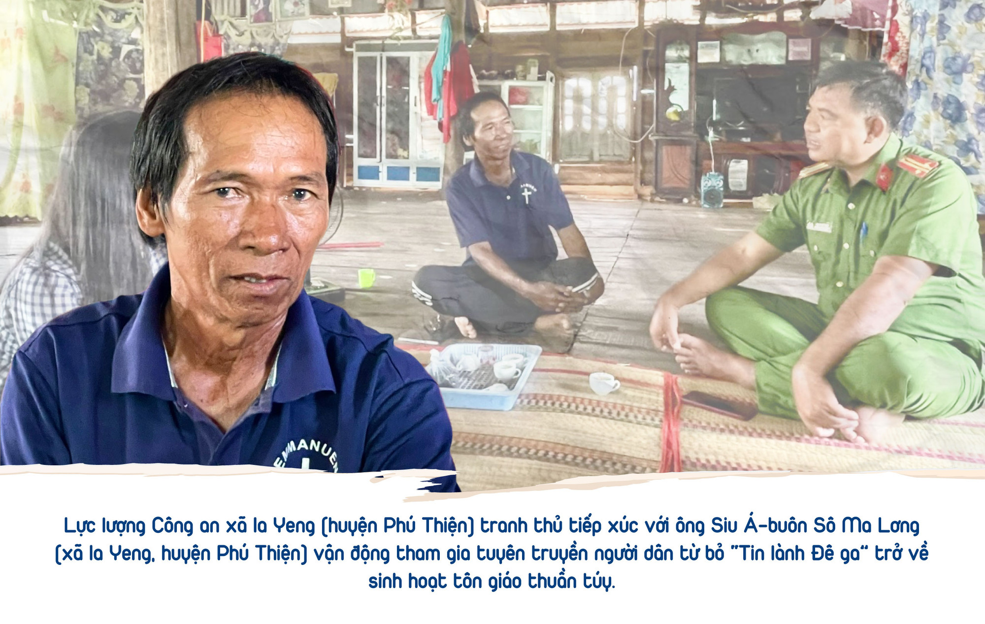 Bà con cũng dần hiểu chuyện, từ bỏ hành vi sai trái, tự nguyện trở về sinh hoạt tôn giáo thuần túy. Đơn cử trường hợp ông Ksor Khíu ban đầu công khai chống đối, lén lút nhóm họp “Tin lành Đê ga” thì nay đã từ bỏ hành vi sai trái, trở về sinh hoạt tôn giáo thuần túy, sống có ích cho gia đình và cộng đồng.