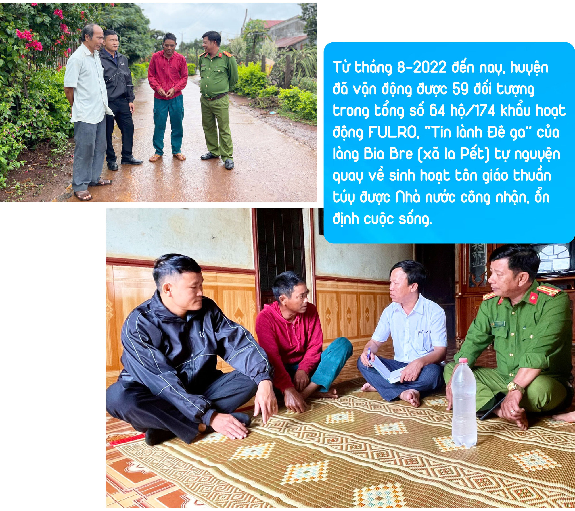 Song hành với công tác vận động đối tượng hoạt động FULRO, “Tin lành Đê ga” quay về sinh hoạt tôn giáo thuần túy thì các địa phương cũng quan tâm tạo điều kiện để các gia đình phát triển sản xuất, ổn định đời sống, góp phần đảm bảo an ninh trật tự trên địa bàn. Ông Đinh Ơng-Phó Chủ tịch UBND huyện Đak Đoa-cho biết: