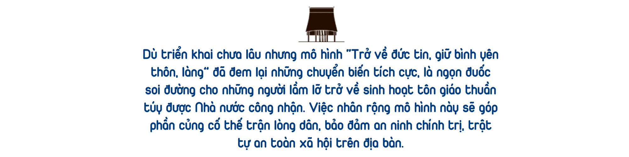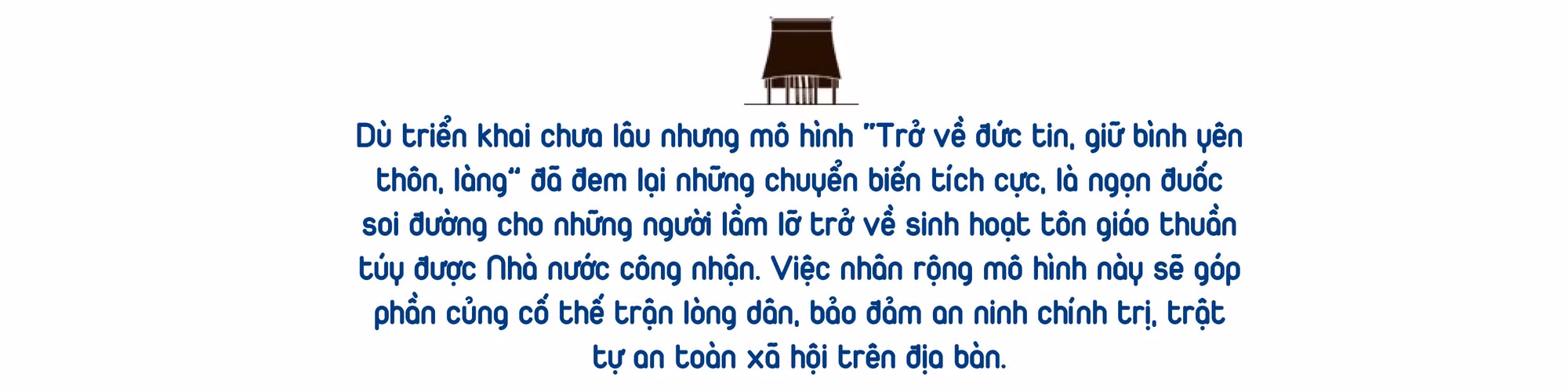 Phát huy tinh thần “kính Chúa, yêu nước”, sống “tốt đời, đẹp đạo”, mô hình này đã tạo điều kiện cho những người lầm đường lạc lối trở về sinh hoạt tôn giáo thuần túy. Trong sự bao dung, sẻ chia của cộng đồng, họ đang nỗ lực vươn lên, yên tâm lao động sản xuất, phát triển kinh tế, xây dựng gia đình, buôn làng ngày càng ấm no, hạnh phúc.