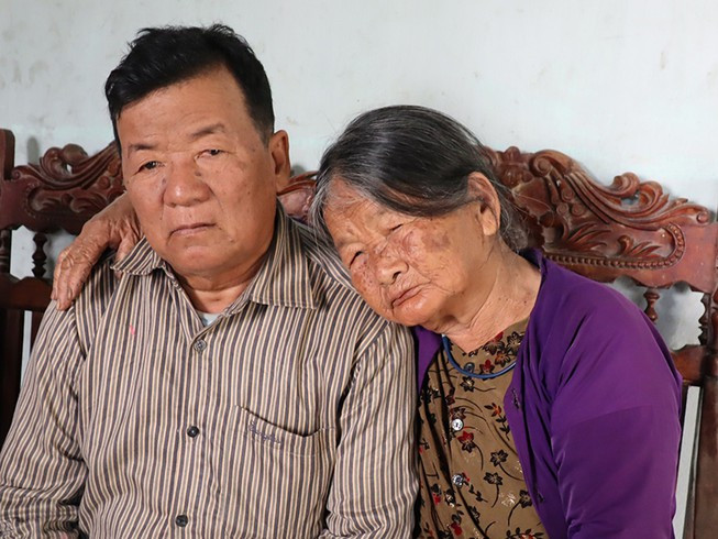 Ông Nguyễn Duy Phổ trong vòng tay của mẹ ở quê nhà. Ảnh: Đắc Lam