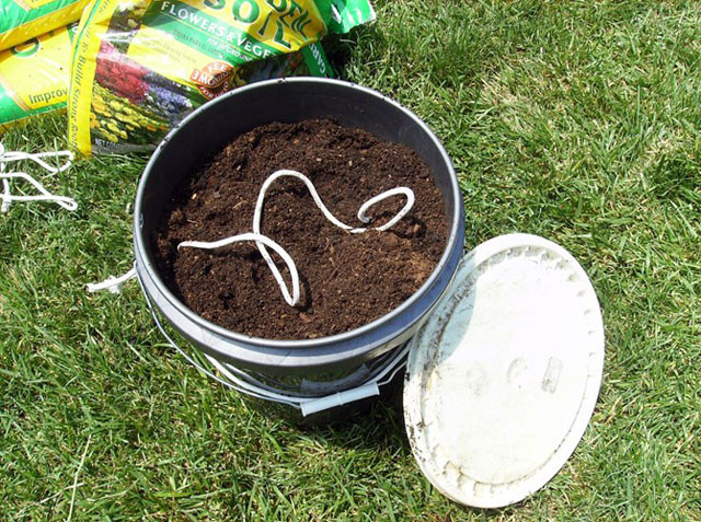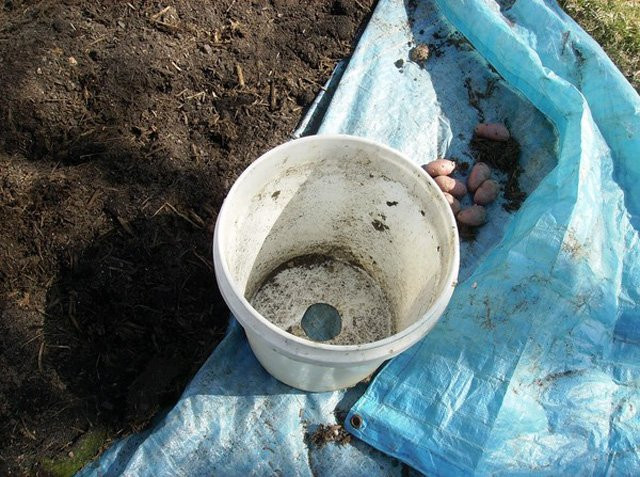 Bước 3: Dùng túi ni long hoặc bao tải để bịt chặt miệng thùng, tránh đất rơi vãi ra xung quanh. Lật ngược thùng nhựa cho phần đáy lên trên.